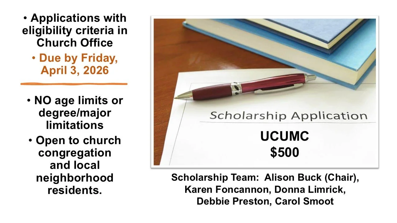 We invite you into a reflection and prayer experience over the 40 days of Lent. The reading plan is HERE. The book is $18 in paperback on Amazon. The program is otherwise free. You can make this Lenten journey in many ways: on your own, with a few friends, or with a group at UCUMC in a weekly discussion at church. Click the image for all the details.